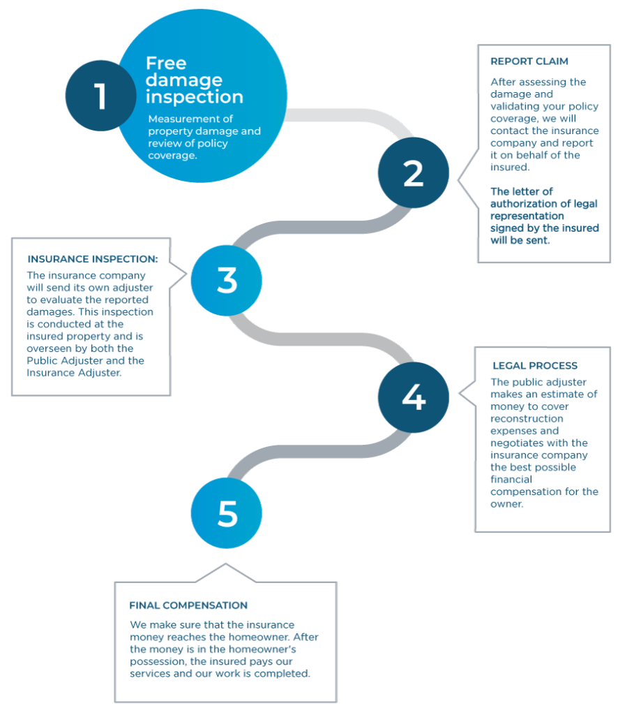 Rodolfo came to me through a friend who referred me to him and I could not have fallen into better hands, he advised me throughout the process, always answered the phone when I had any doubts and got my insurance to give me enough money to change my roof and repair the internal damages caused by the hurricane”.